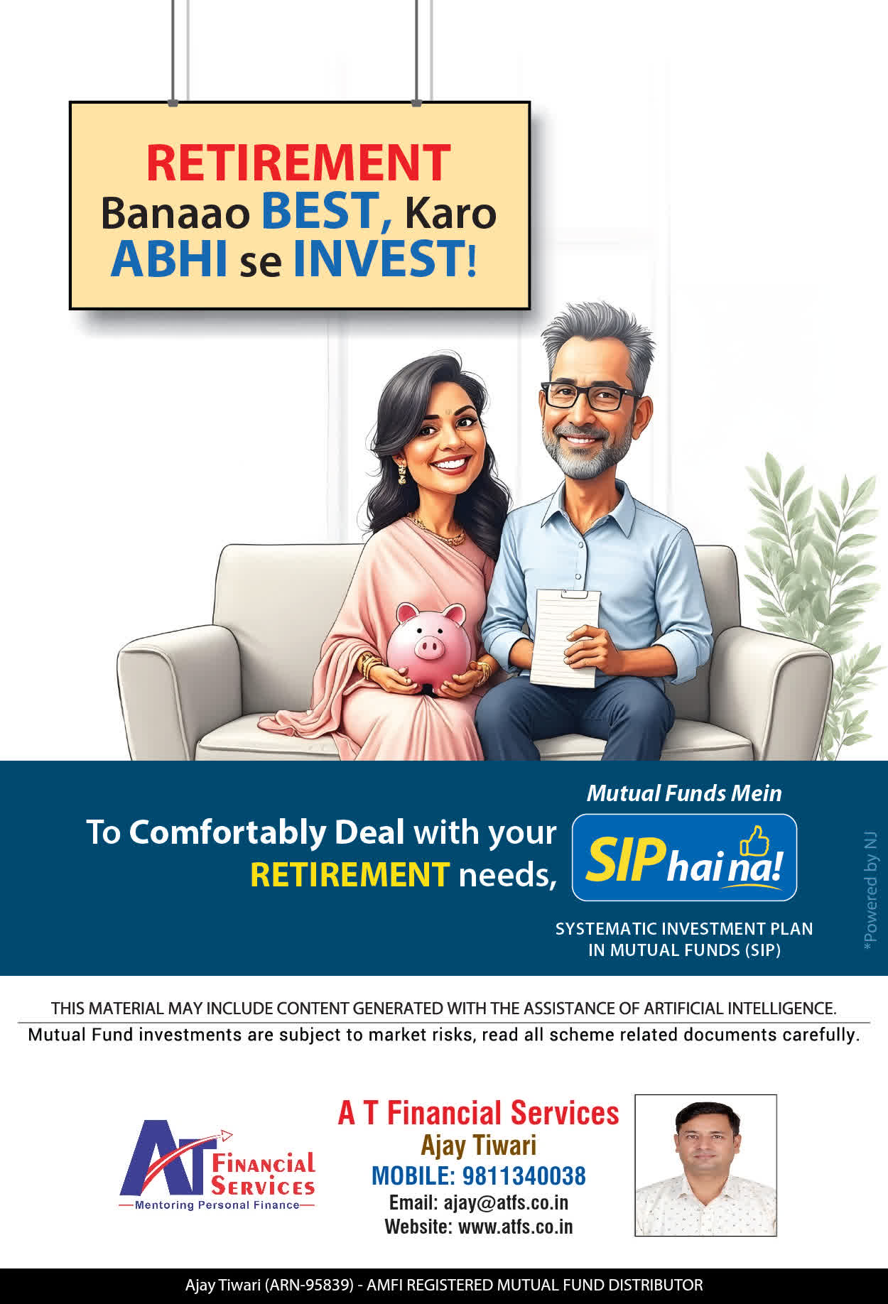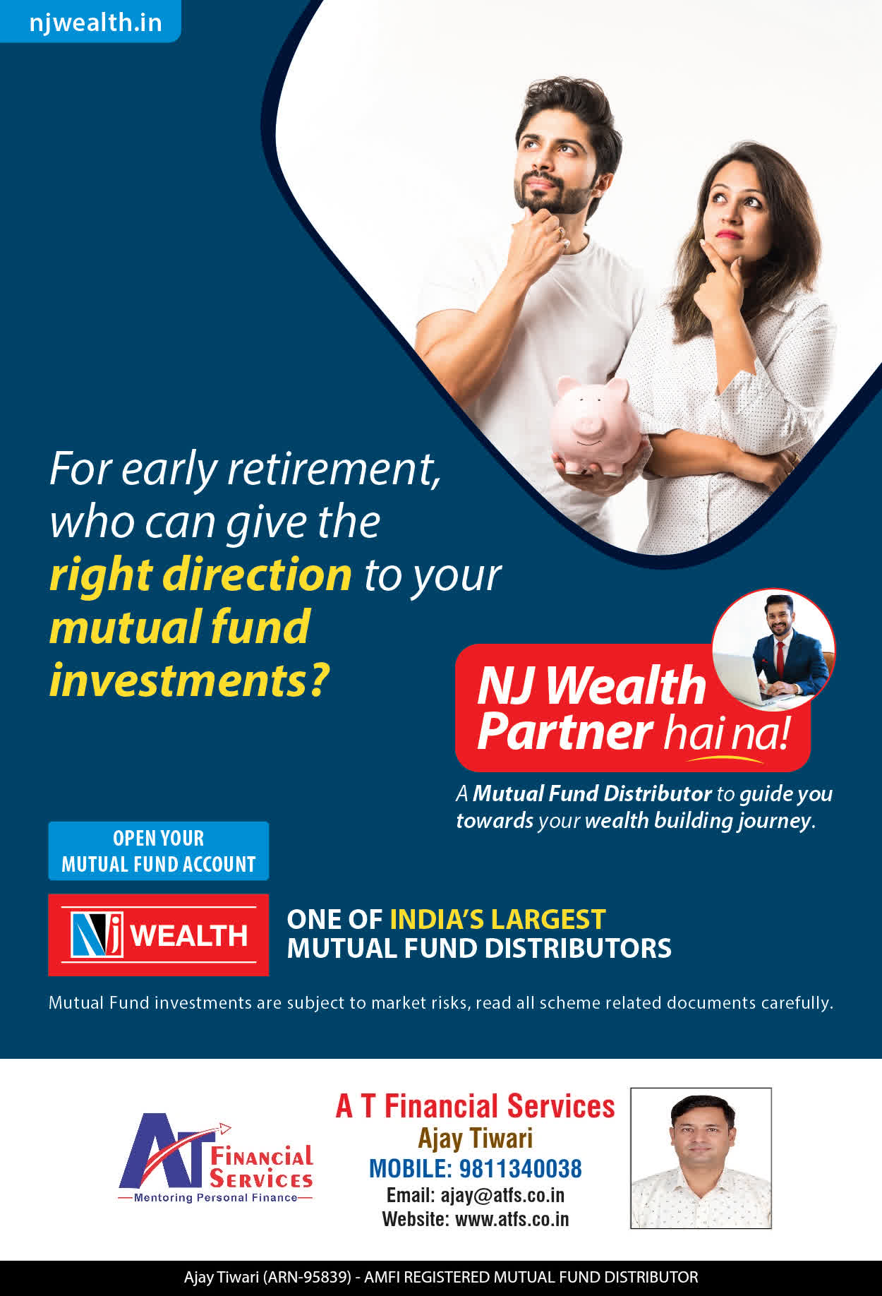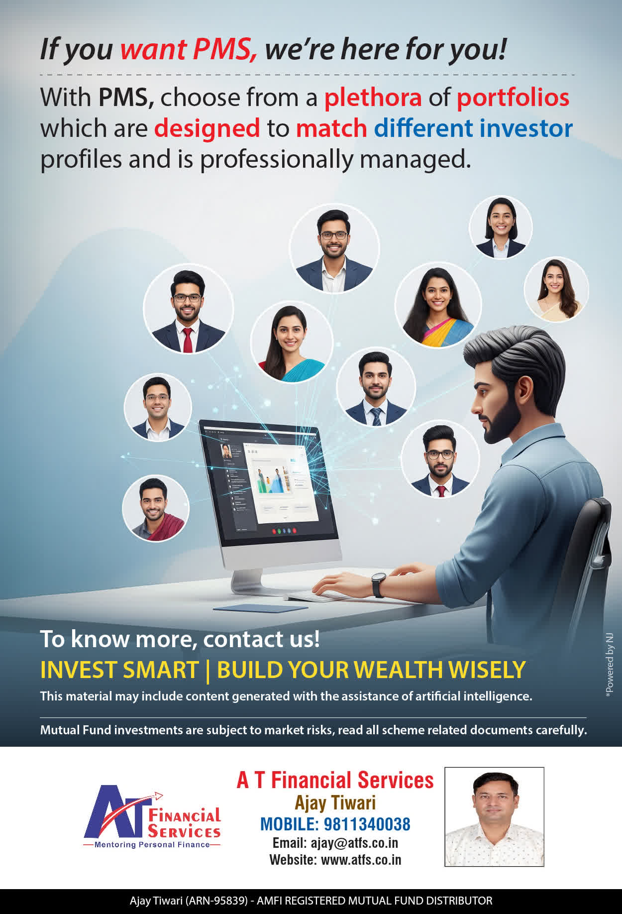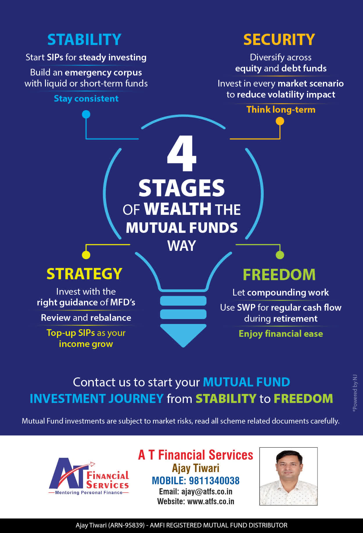 At A T FINANCIAL SERVICES, offer our services through personal counsel with each of our clients after understanding their wealth management needs. Our approach is to enable our client's to understand their investments, have knowledge of investment products and that they make proper progress towards achieving their financial goals in life.